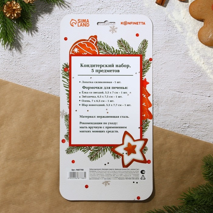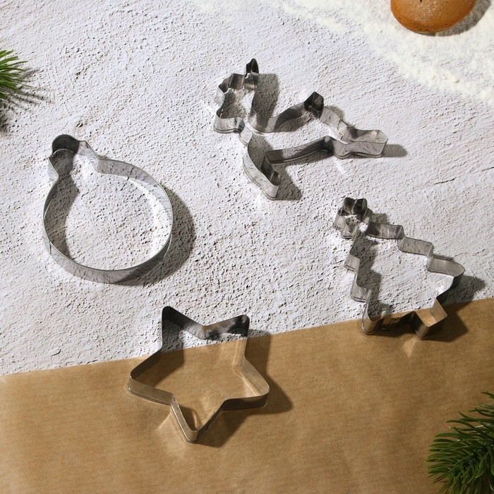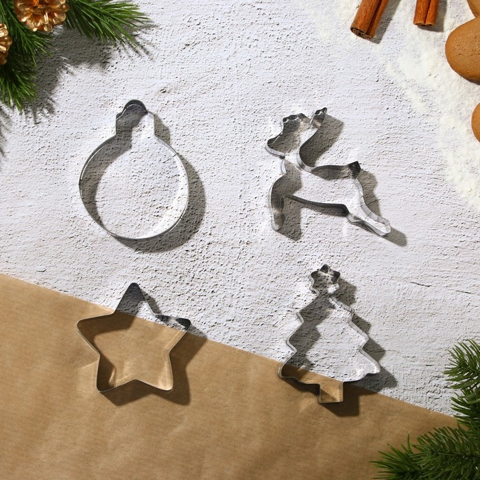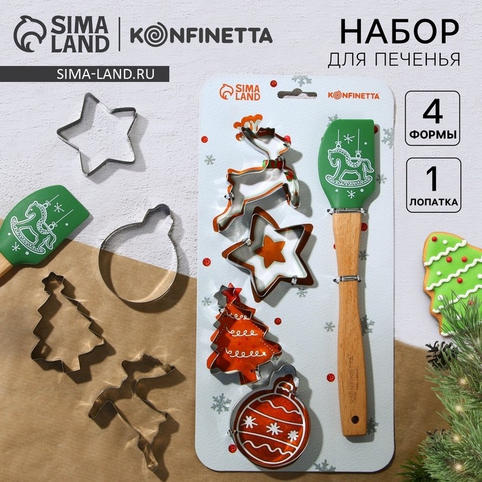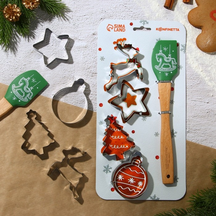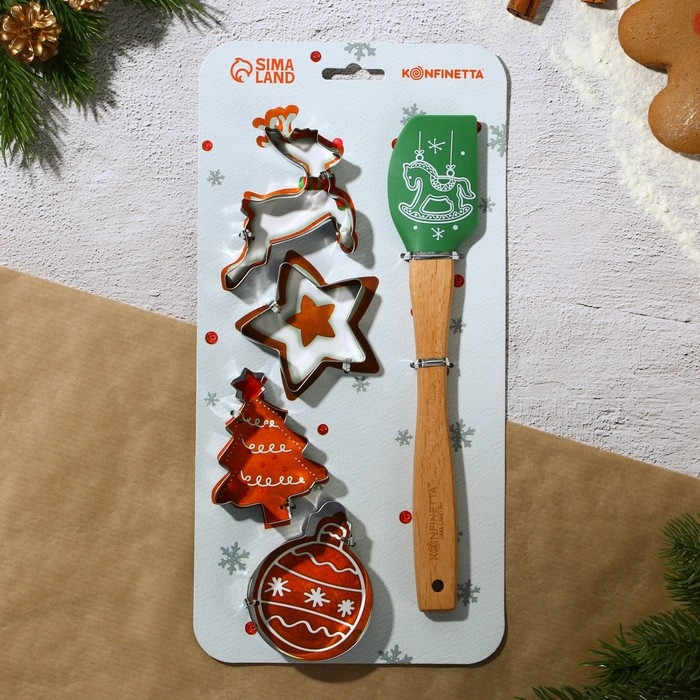 Набор кондитерский «Новогодние сладости», формы для печенья 4 шт, лопатка 1 шт