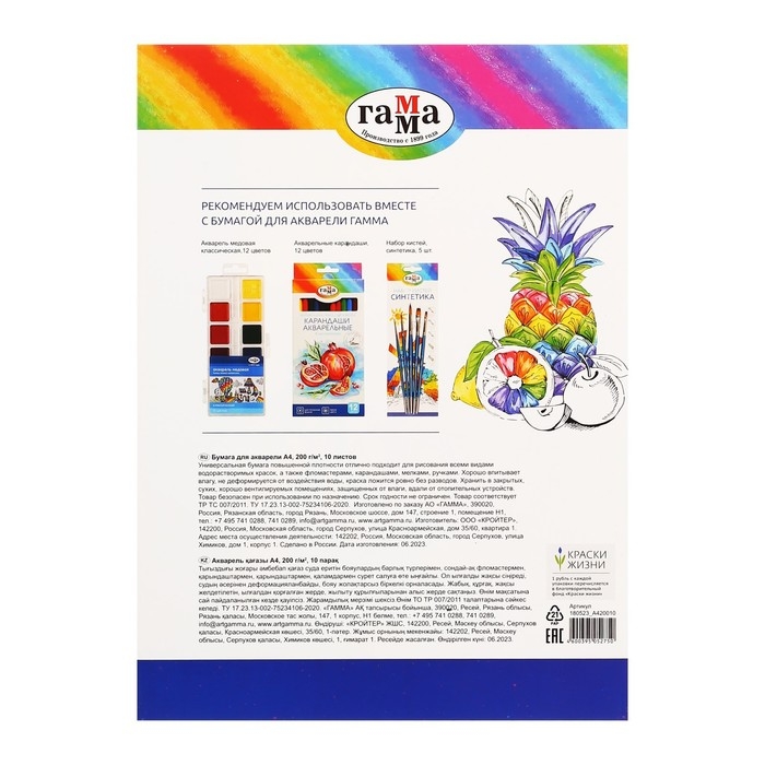 Акварельная бумага ГАММА серии "Классическая" состоящая из 10 листов плотностью 200 г/м2 отлично походит для рисования всеми видами водорастворимых красок, а также фломастерами и карандашами.