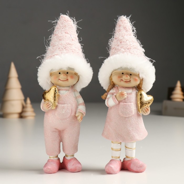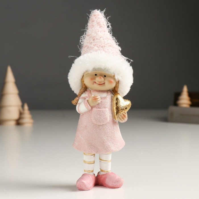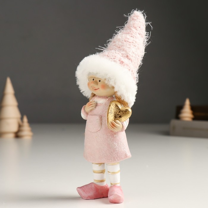 Сувенир полистоун "Малышка/Малыш в розовом наряде, с золотым сердцем" МИКС 5х5х18 см
