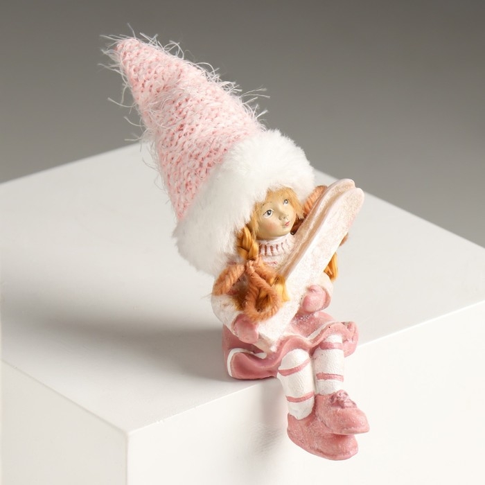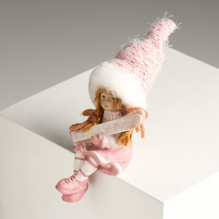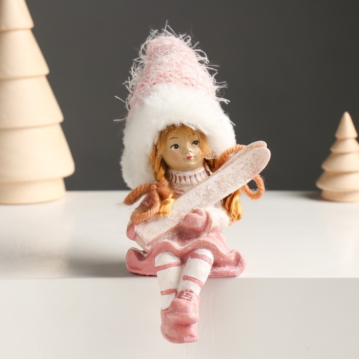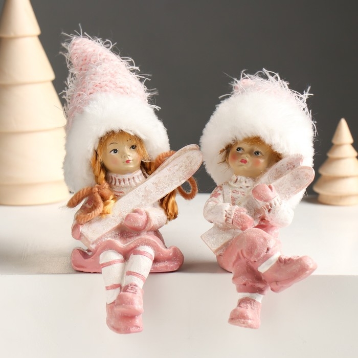 Сувенир полистоун "Малыш/Малышка в розовом костюме, с лыжами" сидит МИКС 5х6х14 см