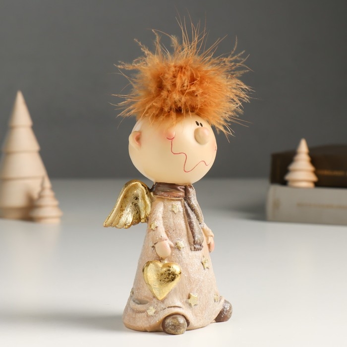 Сувенир полистоун "Ангелочек Афоня в наряде со звёздами, с сердцем" беж, блёстки 6х9х14,5 см 94988