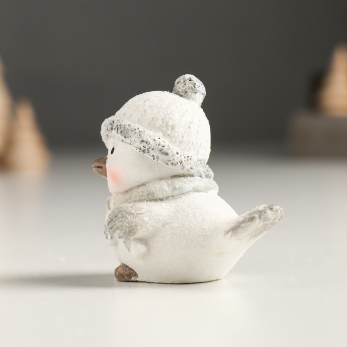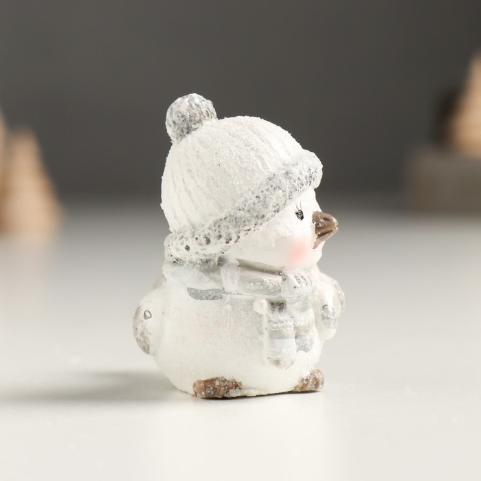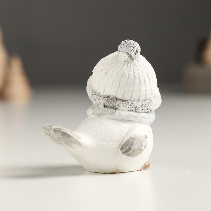 Сувенир полистоун "Белый птенчик в шапке и вязанном шарфе" серебро МИКС 5х3,5х5 см