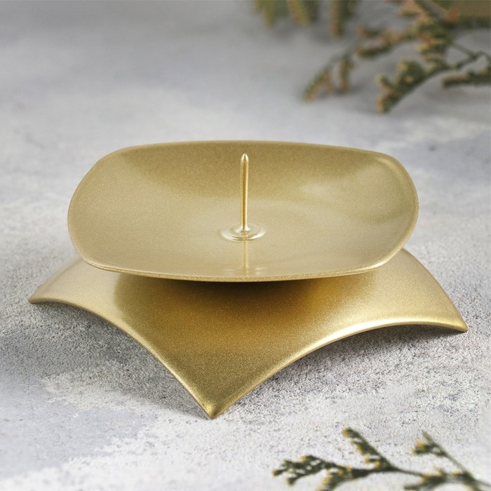Подсвечник "Кварта Н" металл на одну свечу, 9,5х3 см, золотой
