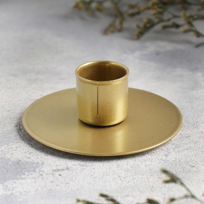 Подсвечник "Круг" металл на одну свечу, 7х3 см, золотой