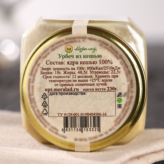 Урбеч из очищенных ядер кешью - это натуральная паста, которая не содержит эмульгаторов и загустителей. Кроме нежного вкуса, для которого таять во рту не просто слова, урбеч обладает множеством полезных свойств: поддерживает водный баланс организма, заботится о сердце и сосудах, а также способствует правильной работе кишечника.