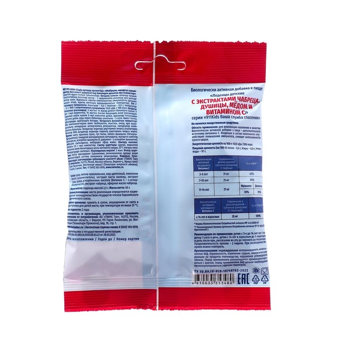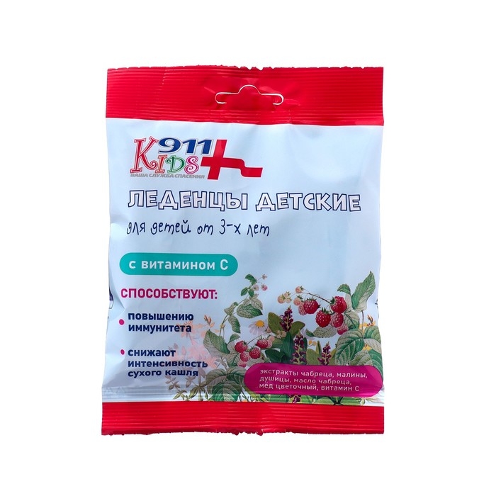 Леденцы "911" детские чабрец, душица, мед, витамин С, 50 г