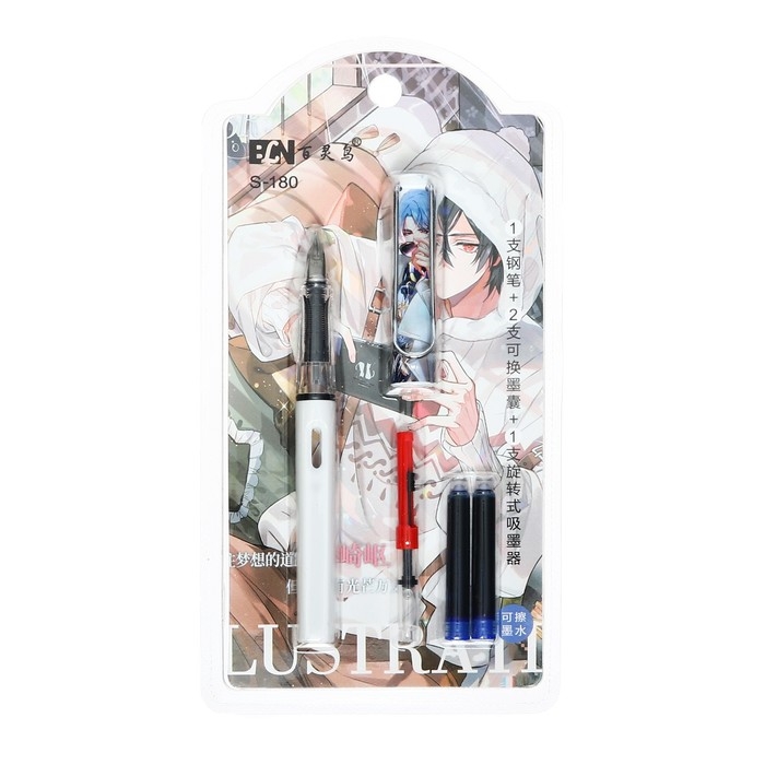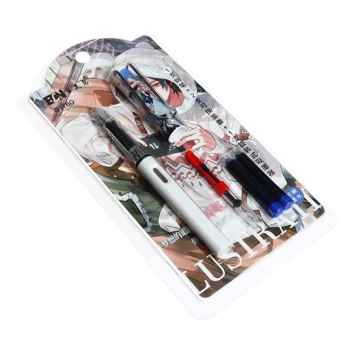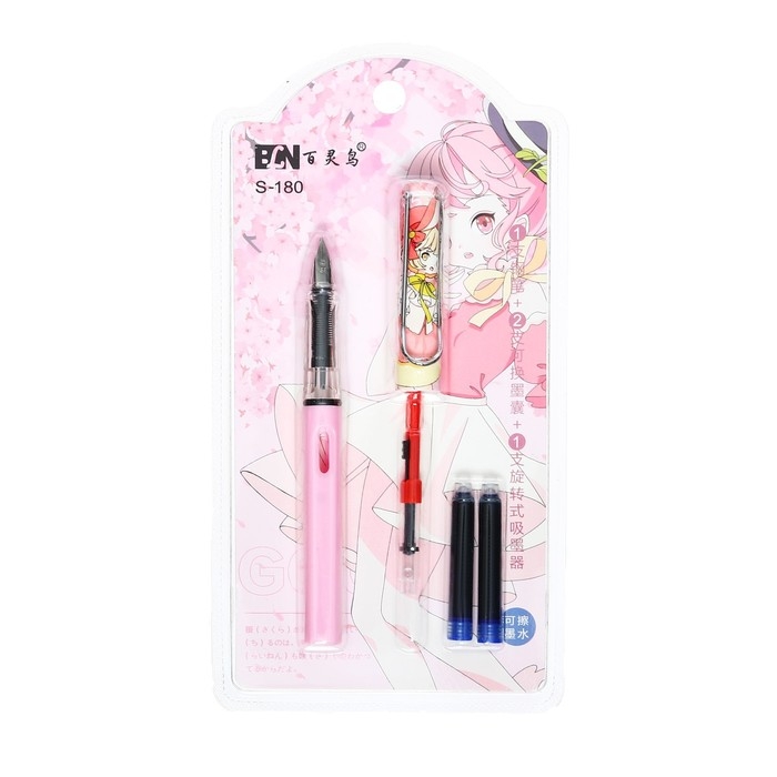 Ручка перьевая + 2 картриджа синих + поршень, на блистере, "Аниме", МИКС