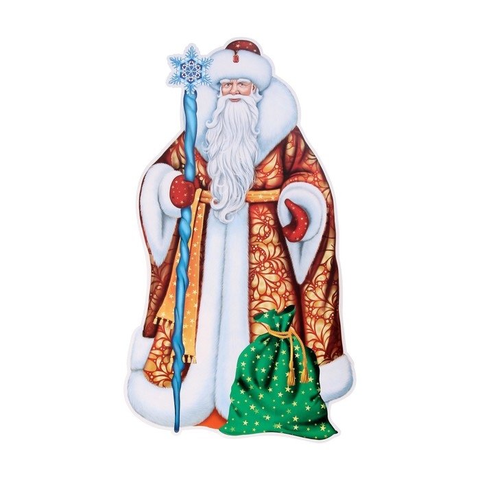 Плакат вырубной "Дед Мороз" зелёный мешок, 49х28 см