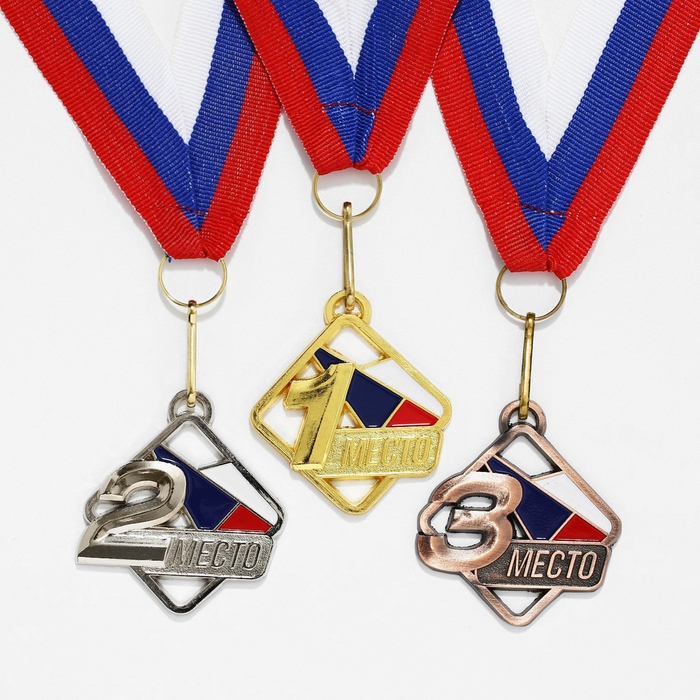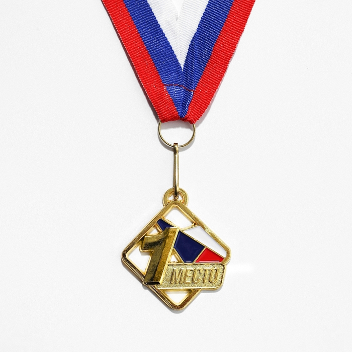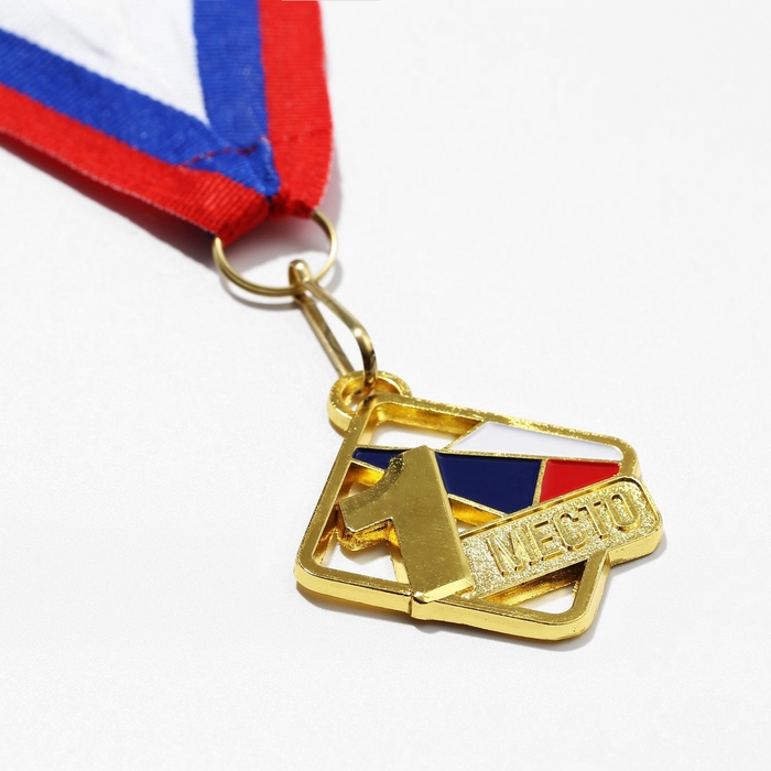 Медаль призовая 013, d= 5 см. 1 место, триколор. Цвет золото. С лентой