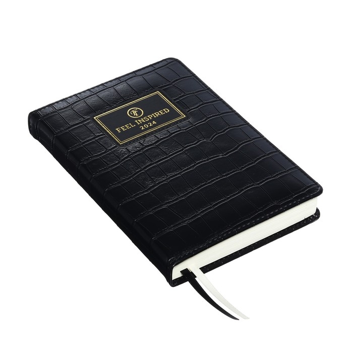 Ежедневник датированный 2024 A5 176 листов, deVENTE.Grande, твёрдая обложка из искусственной кожи, тиснение фольгой, ляссе, кремовый блок 70 г/м2, чёрный
