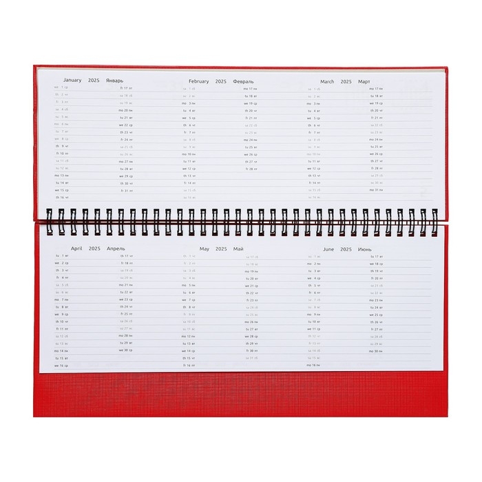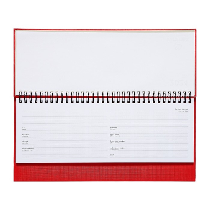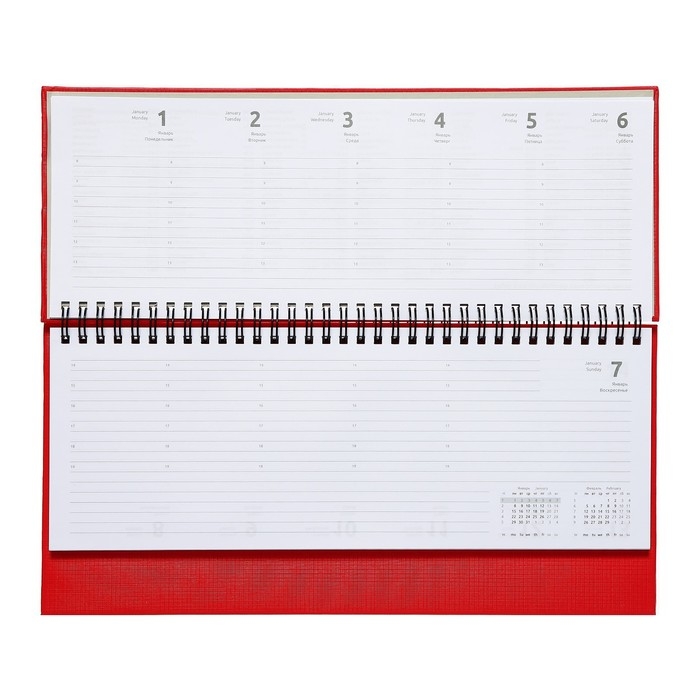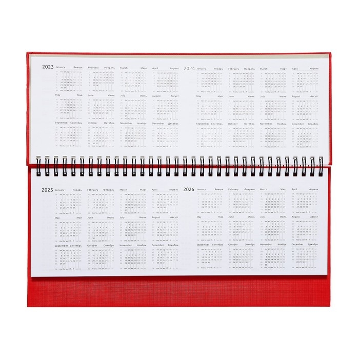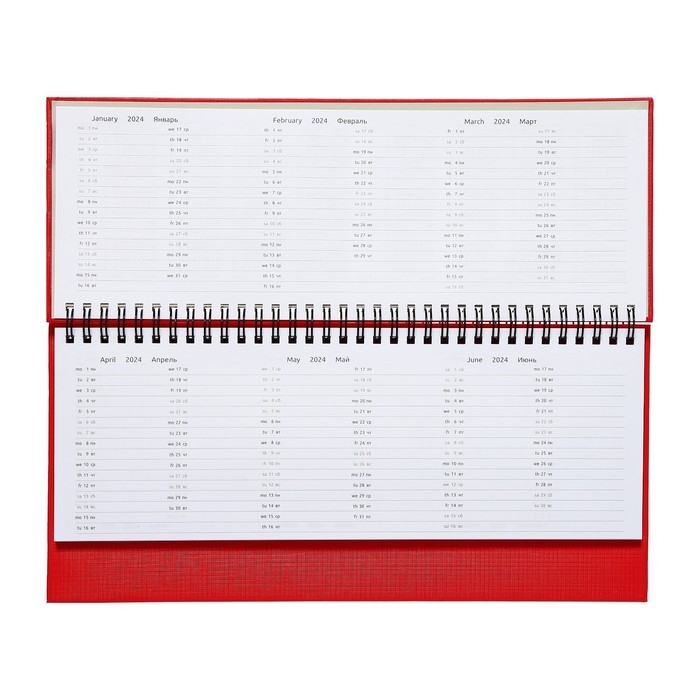 Планинг датированный 2024 года, 294 х 142 мм, 64 листа, на гребне, Attomex.Lancaster, твёрдая обложка балакрон, блок 70 г/м2, красный