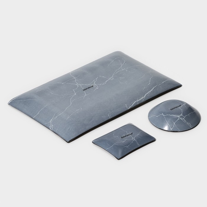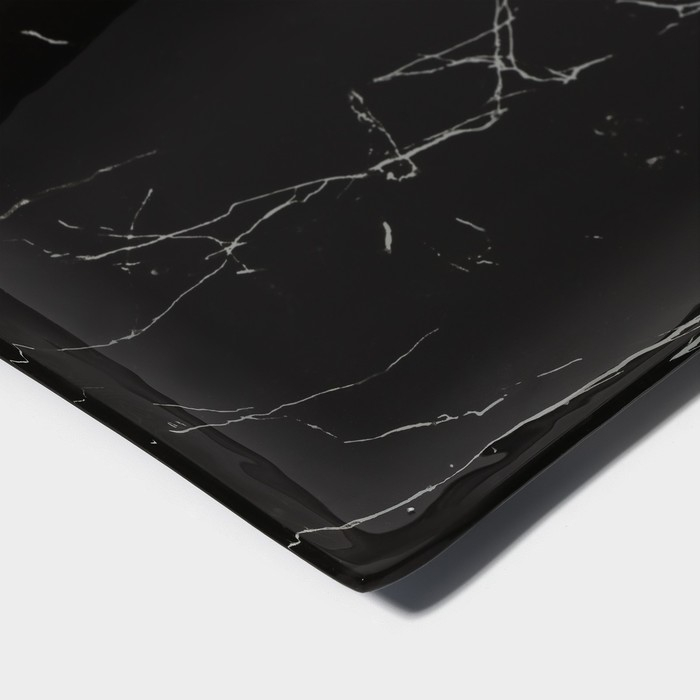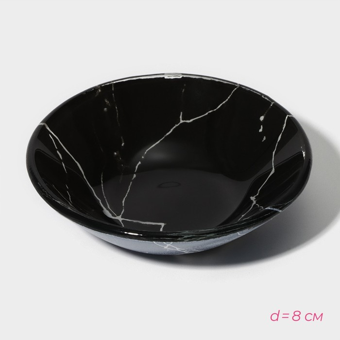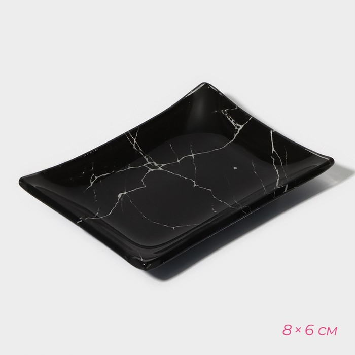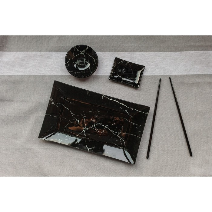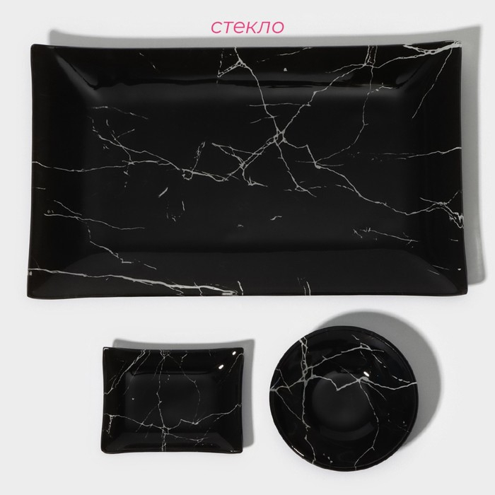 Набор для суши из стекла Доляна «Марбл чёрный», 3 предмета: соусники 8×2 см, 8×6 см, подставка 25×15 см