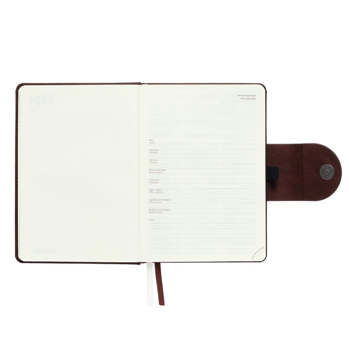 Ежедневник датированный 2024 A5 176 листов, deVENTE.Norwich, твёрдая обложка с поролоном из искусственной кожи, ляссе, кремовый блок 70 г/м2, коричневый