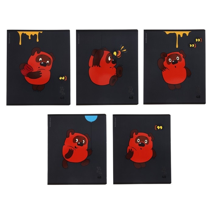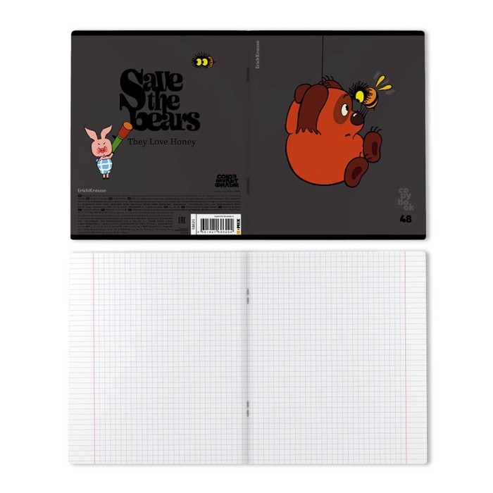 Тетрадь 48 листов в клетку, ErichKrause "Винни-Пух", обложка мелованный картон, блок офсет 100% белизна, МИКС