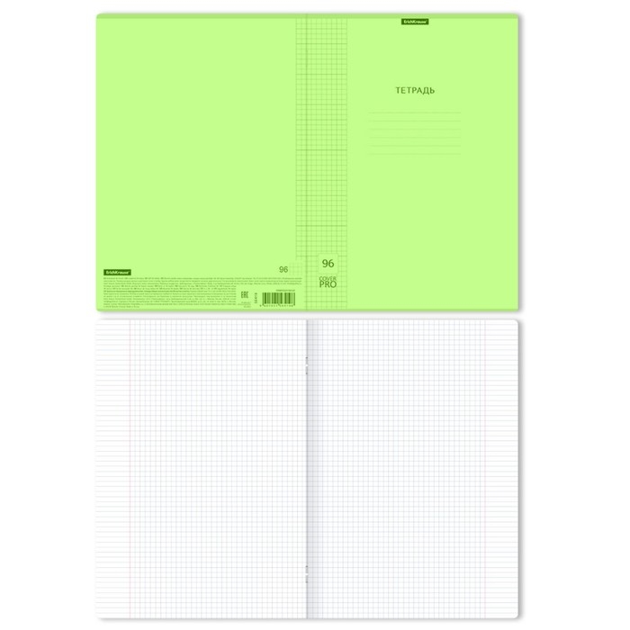 Тетрадь А4, 96 листов в клетку, ErichKrause "Классика CoverPrо Neon", пластиковая обложка, блок офсет 100% белизна, зелёная