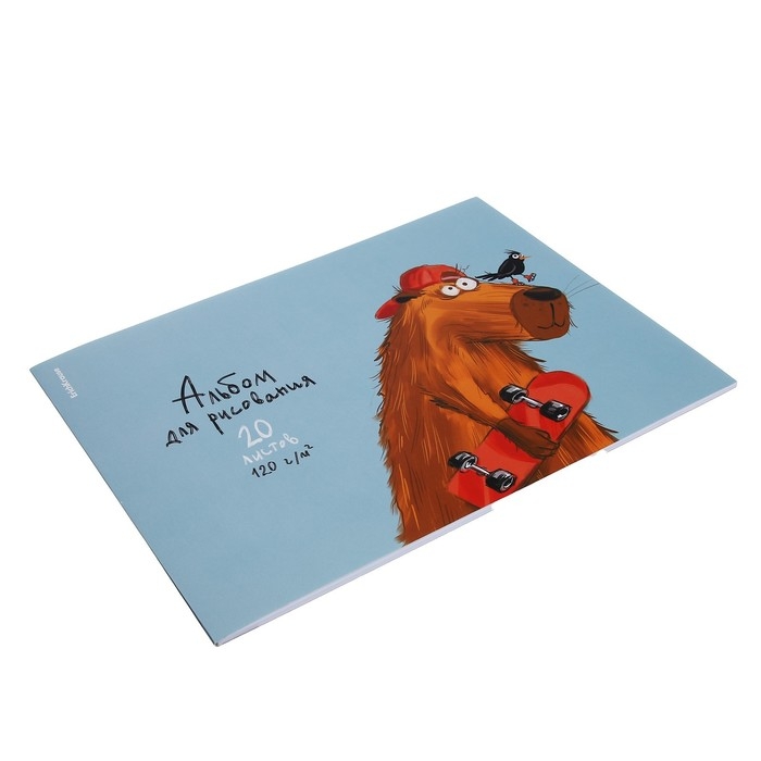 Альбом для рисования формата А4 (210х297 мм). Обложка из высококачественного мелованного картона плотностью 170 г/м2. Жесткая подложка 360 г/м2. В блоке 20 листов. Бумага плотностью 120 г/м2. Белизна бумаги - 100%. Тип скрепления - клей. Альбомы упакованы в термоусадочную пленку по 10 штук.