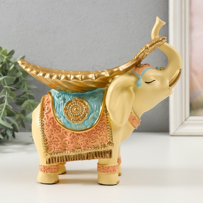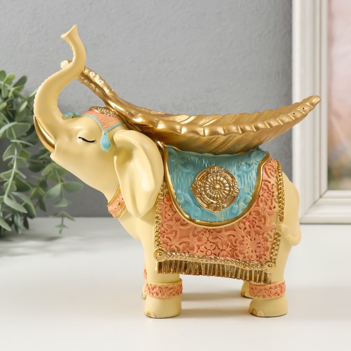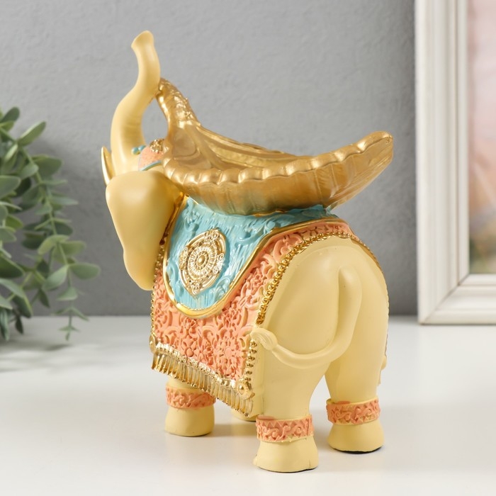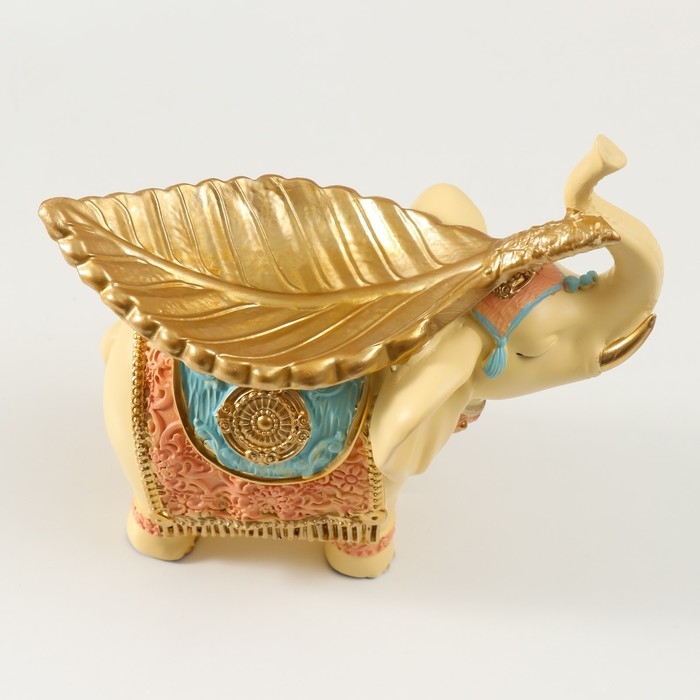 Сувенир полистоун "Бежевый слон с золотым листом на спине" 19,3х11х19 см