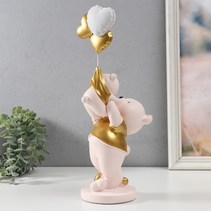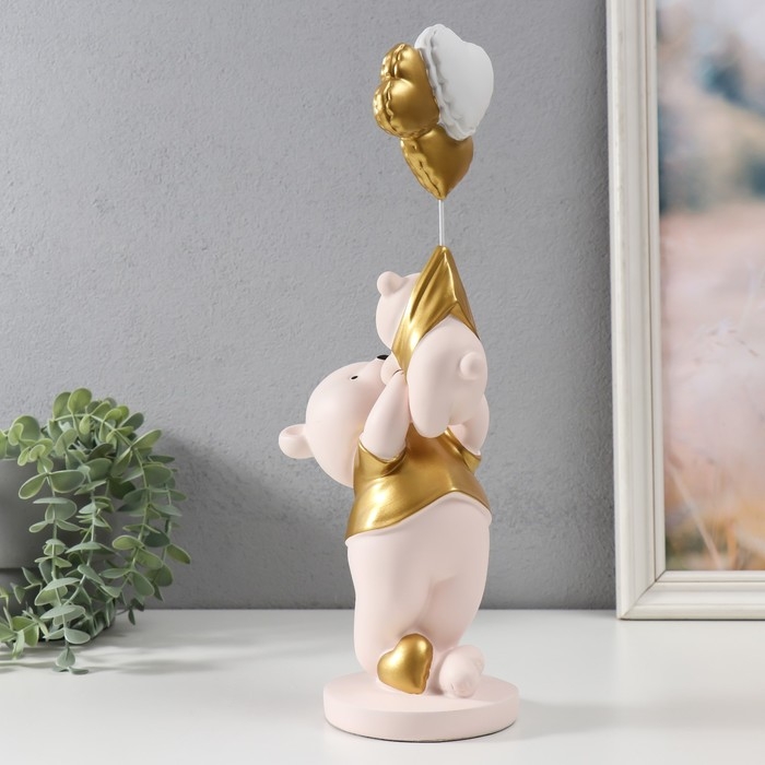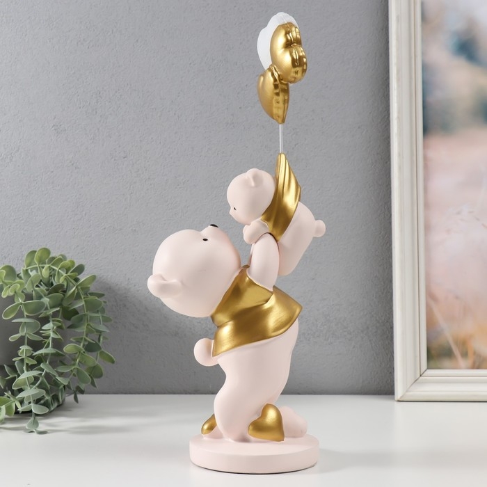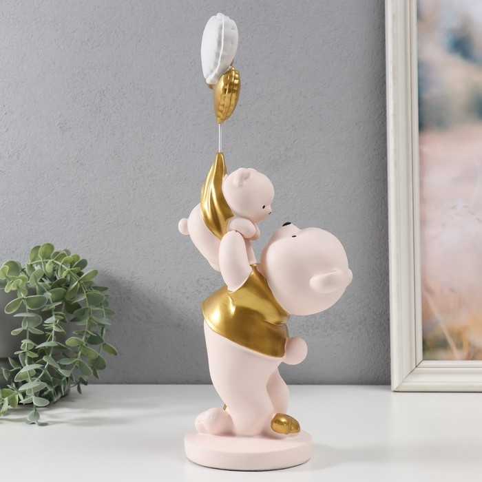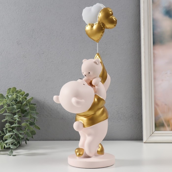 Сувенир полистоун "Мишка держит медвежонка с шариками" 10х13х36 см
