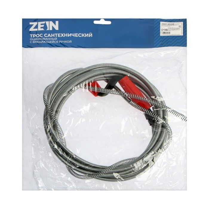 Трос сантехнический ZEIN engr, оцинкованный, с вращающейся ручкой, d=9 мм, L=5 м
