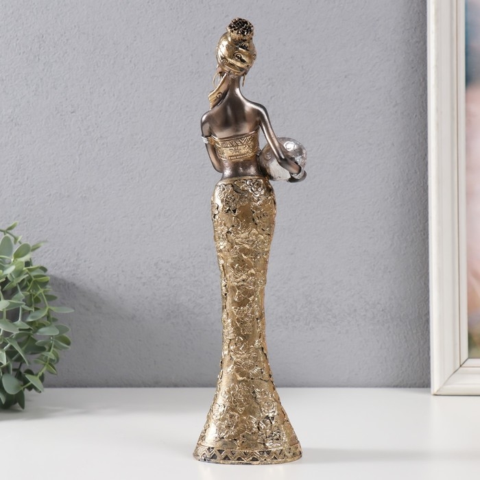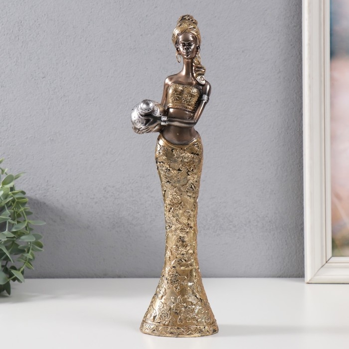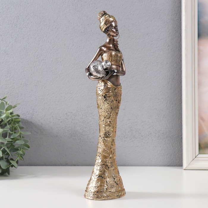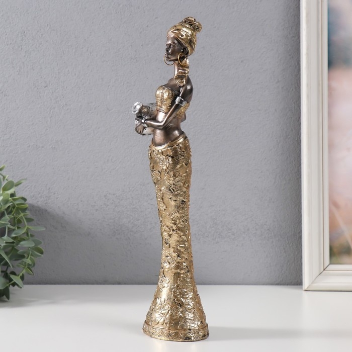 Сувенир полистоун "Африканка в золотом костюме с кувшином" 8,3х6х33 см