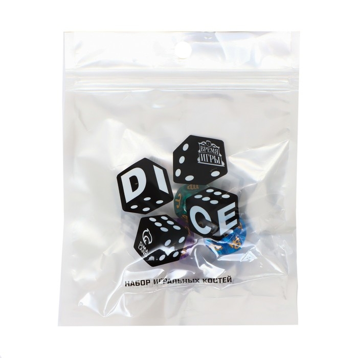 Кости игральные 2.5 х 2.5 см, прозрачные, набор 5 шт