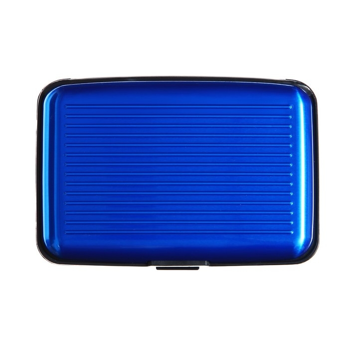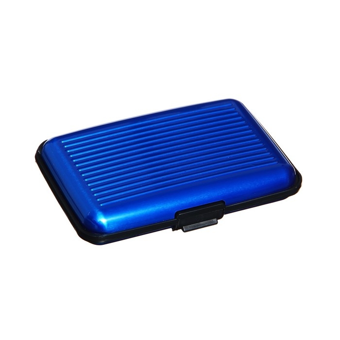 Визитница пластиковая, металлическая, с отделениями внутри, синяя