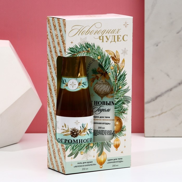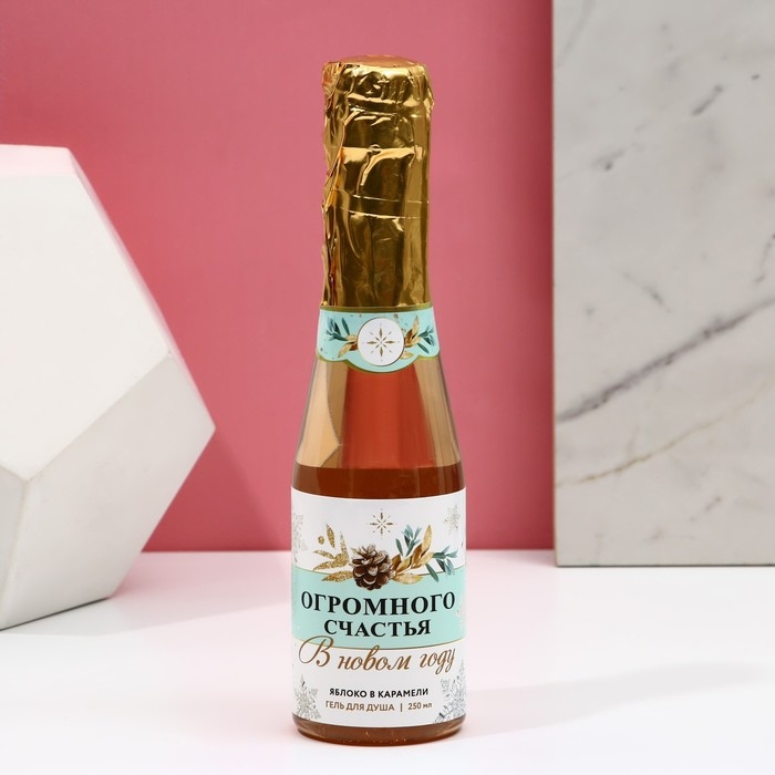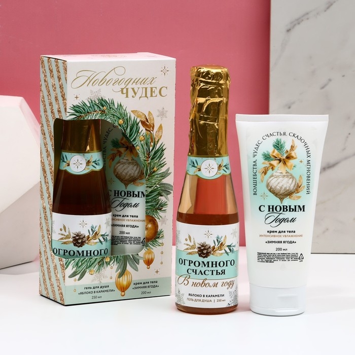 Новый Год. Подарочный набор, гель для душа во флаконе шампанское 250 мл и крем для тела 200 мл