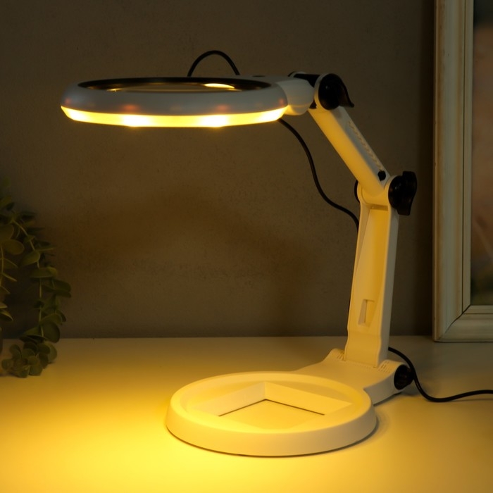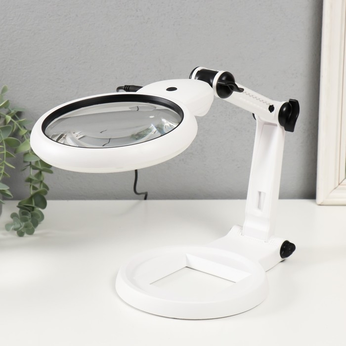 Лампа-лупа х4 х8 для творчества LEDx24 от 3AAA USB линзы d=2,95 и 12 см 5,5х19,7х40,5 см