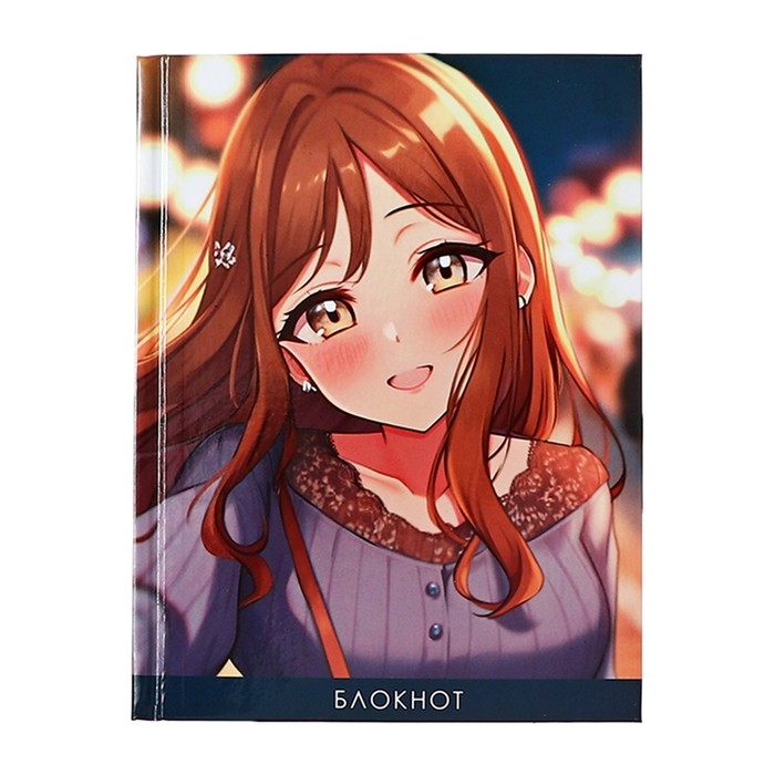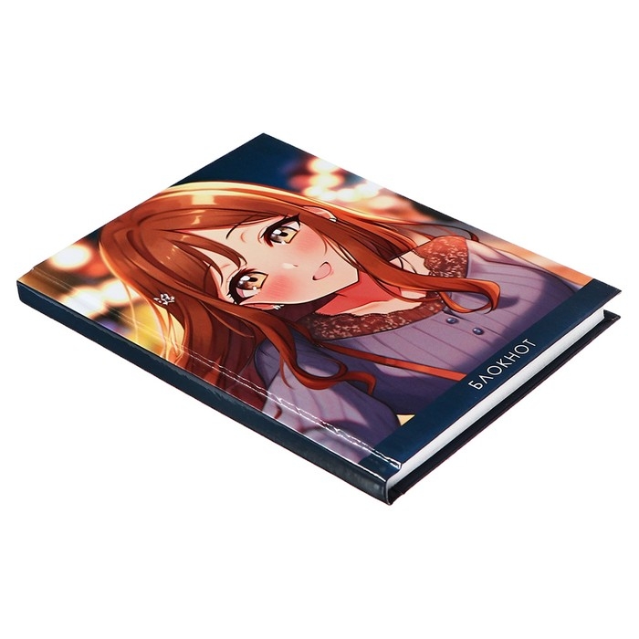 Блокнот А6, 80 листов в клетку "Аниме", твёрдая обложка, глянцевая ламинация, блок офсет