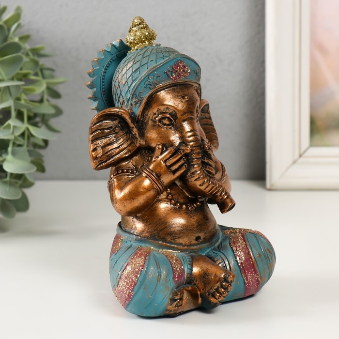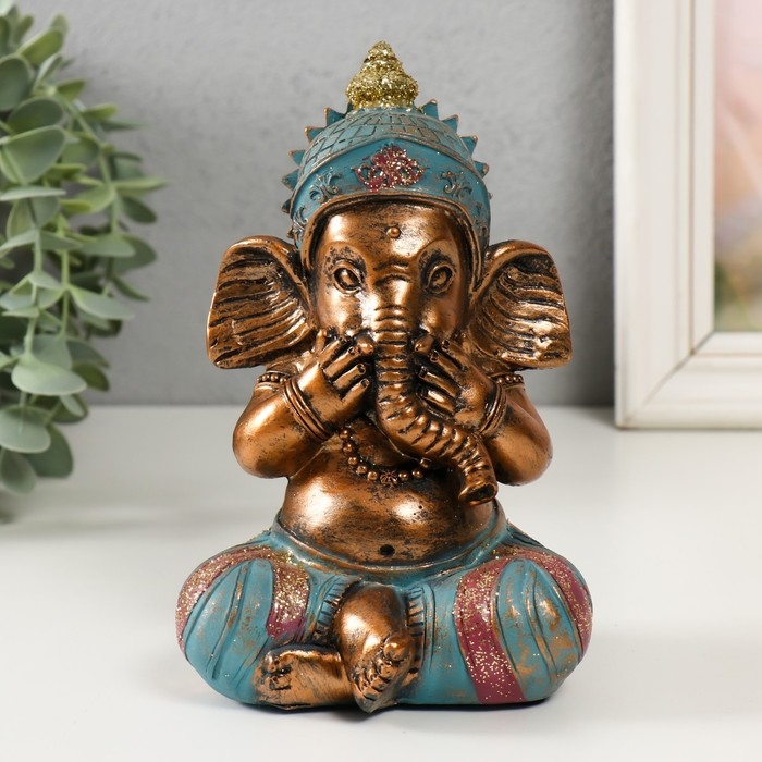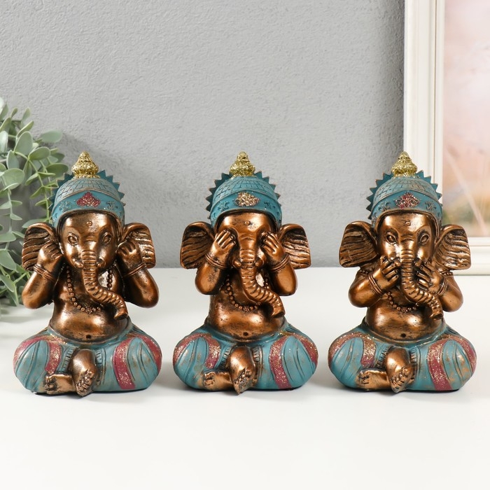 Сувенир полистоун "Ганеша - не слышу, не вижу, не скажу" с золотой патиной МИКС 11х9,5х16 см 99303