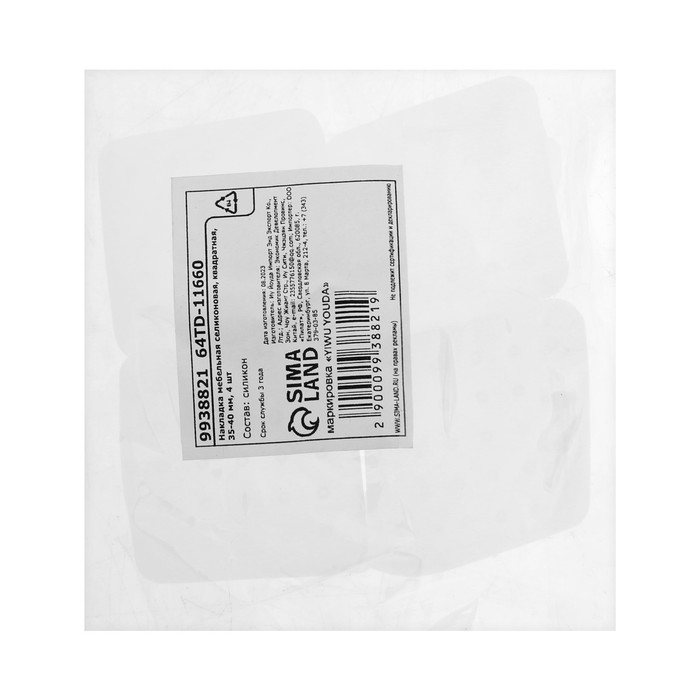 Накладка мебельная силиконовая, квадратная, 35-40 мм, 4 шт