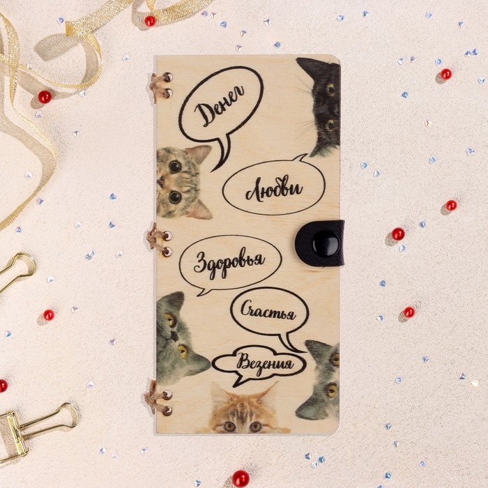 Конверт деревянный "Денег, любви, счастья" ручная работа, светлый, коты, 16,5х8 см