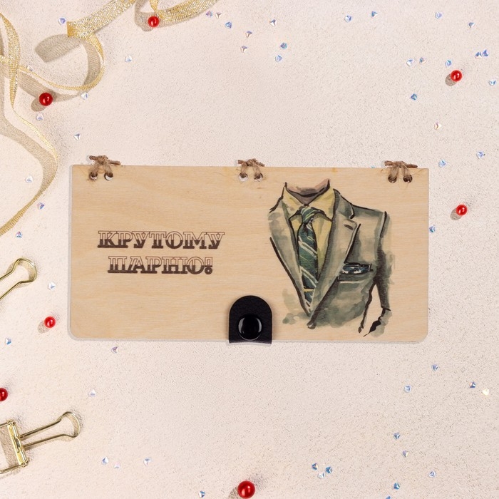 Конверт деревянный "Крутому парню" ручная работа, светлый, пиджак, 16,5х8 см