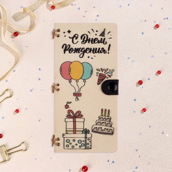 Конверт деревянный "С Днём Рождения!" ручная работа, светлый, подарки, 16,5х8 см