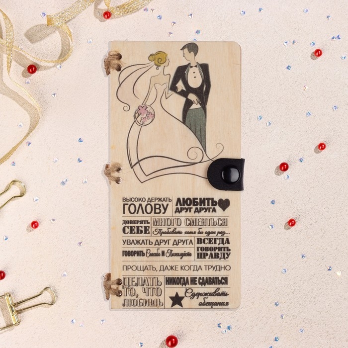 Конверт деревянный "Пожелания на свадьбу" ручная работа, светлый, пара, 16,5х8 см