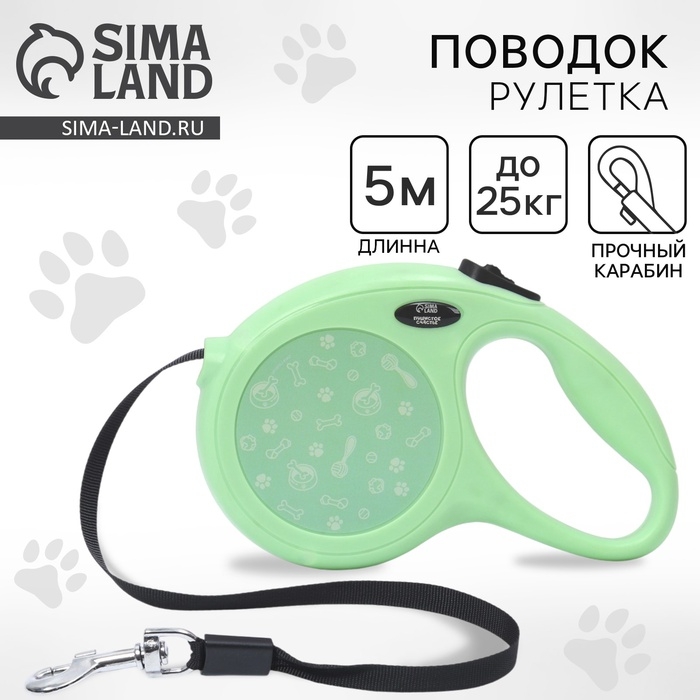 Аксессуар подходит для выгула собак весом до 25 кг, длина поводка 5 метра.