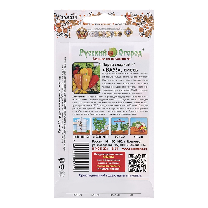 Семена Перец сладкий "ВАУ F1" смесь, ц/п, 8 шт.