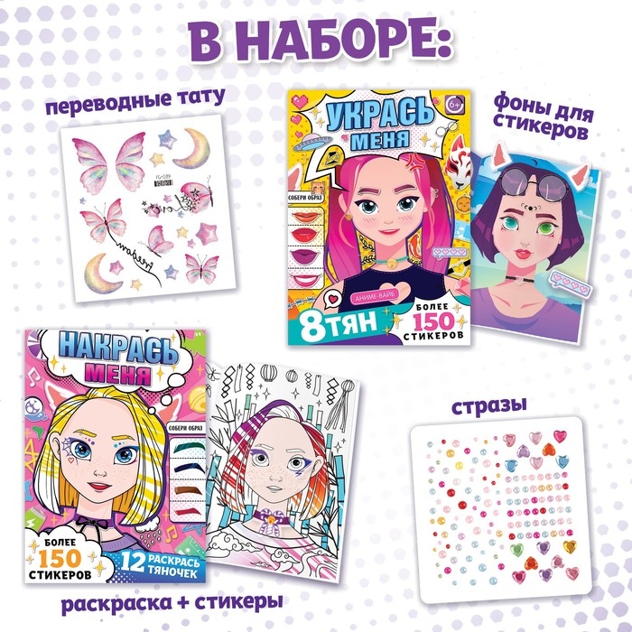 - Внутри каждой книги вы найдёте более 150 наклеек для творчества.