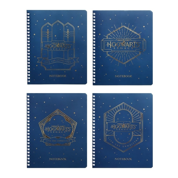 Тетрадь 48 листов в клетку на гребне "Гарри Поттер", обложка мелованный картон, матовая ламинация, 3D фольга, блок офсет, 4 вида МИКС
