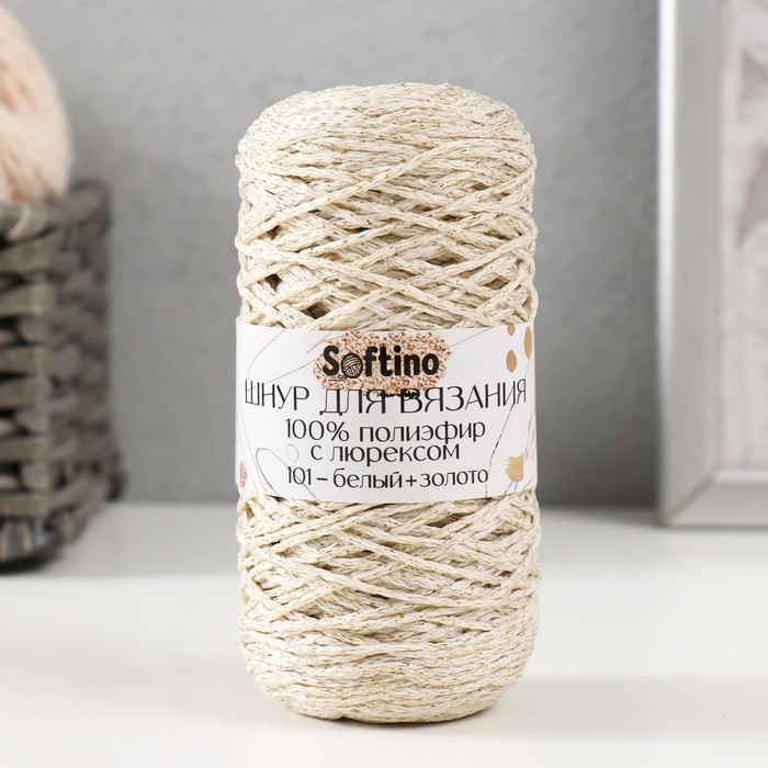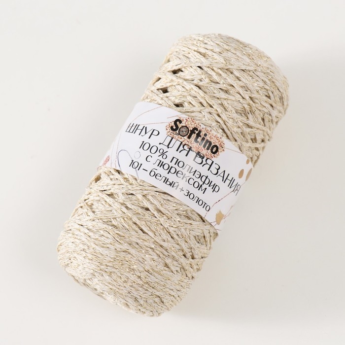 Шнур для вязания 100% полиэфир с люрексом 1 мм цилиндр, 75±10гр, 200м, 01-белый+золото