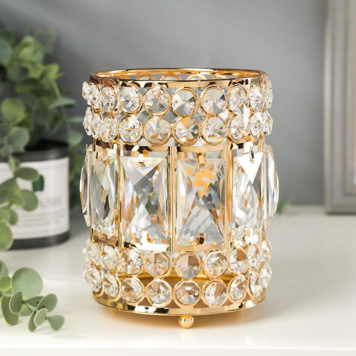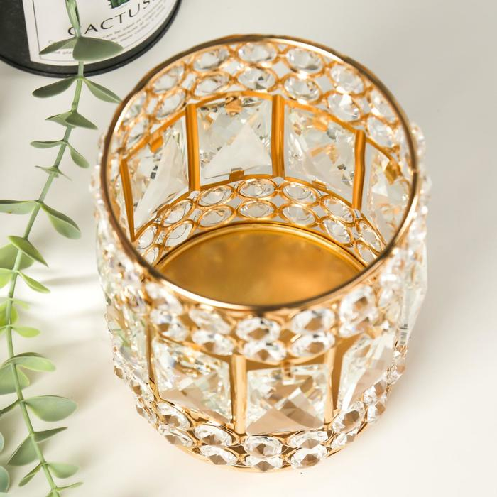 Подсвечник металл, стекло на 1 свечу "Прямоугольники и круги" золото 15,3х11х11 см