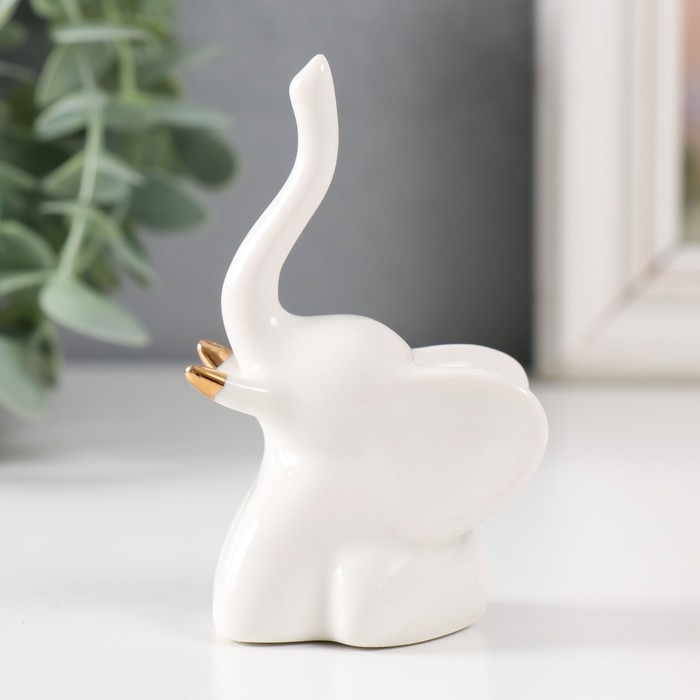 Сувенир керамика "Микро слоник" белый с золотом 5,5х4х9 см