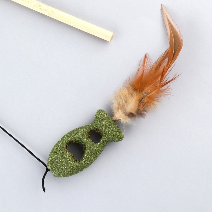 Мышь для кошек из прессованной кошачьей мяты с хвостом из перьев, 5 см