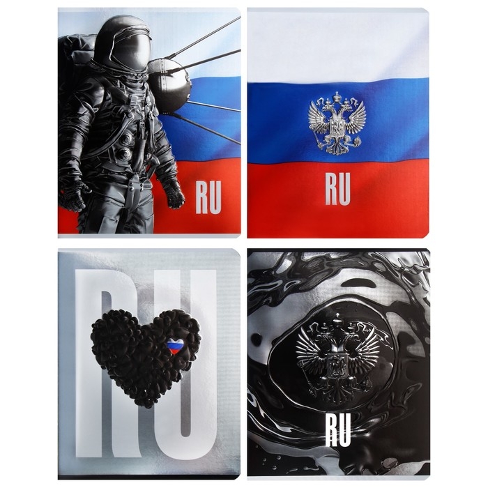 Тетрадь 48 листов в клетку на скрепке "Моя Россия", обложка мелованный картон, ВД-лак, металлизация, конгрев, МИКС