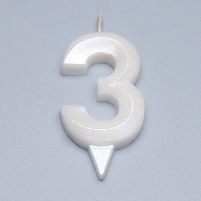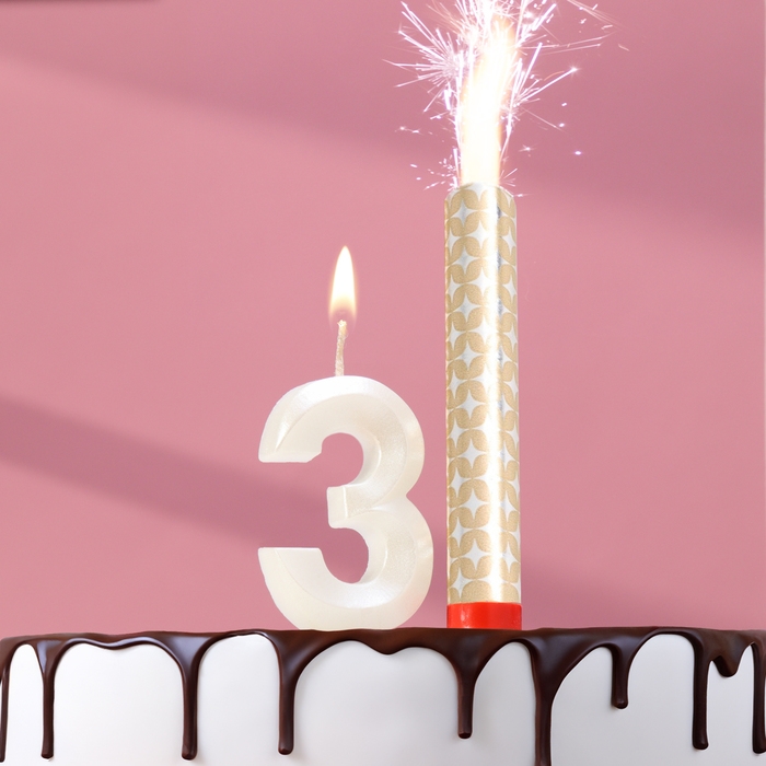 Свеча в торт "Грань + фонтан", цифра "3", жемчужный, 6,5 см
