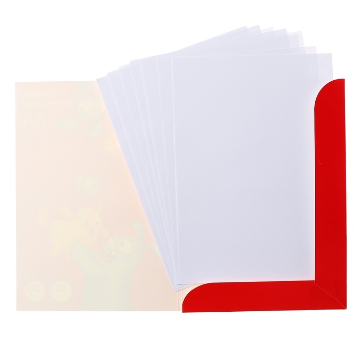 Бумага для рисования формата А4 (210x297). Папка из плотного картона. В блоке 30 листов бумаги плотностью 120 г/м2. Белизна бумаги — 100%.