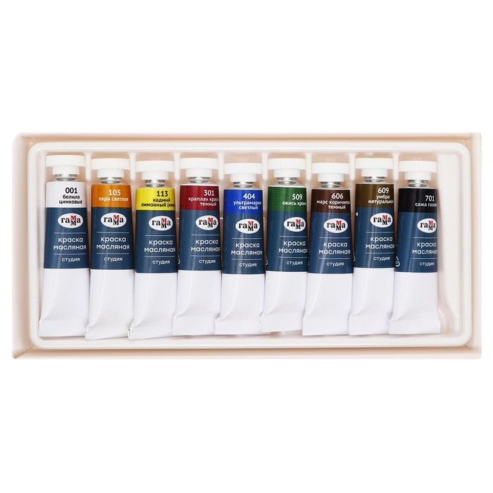 Краска масляная художественная, набор 9 цветов х 9 мл, в тубах, Гамма, "Студия", 20100899