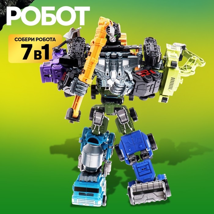 Робот «Спецбот. Бетономешалка», трансформируется, собирается в 1 большого из 7 роботов
