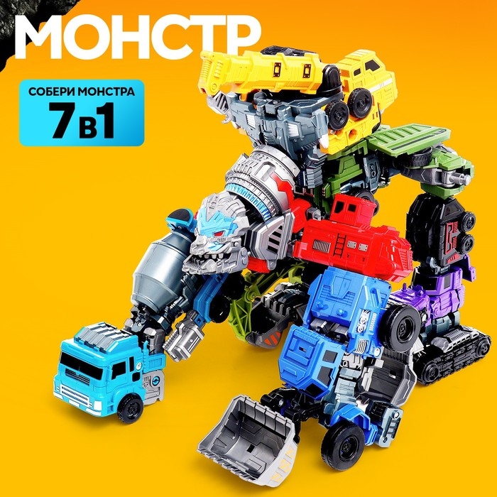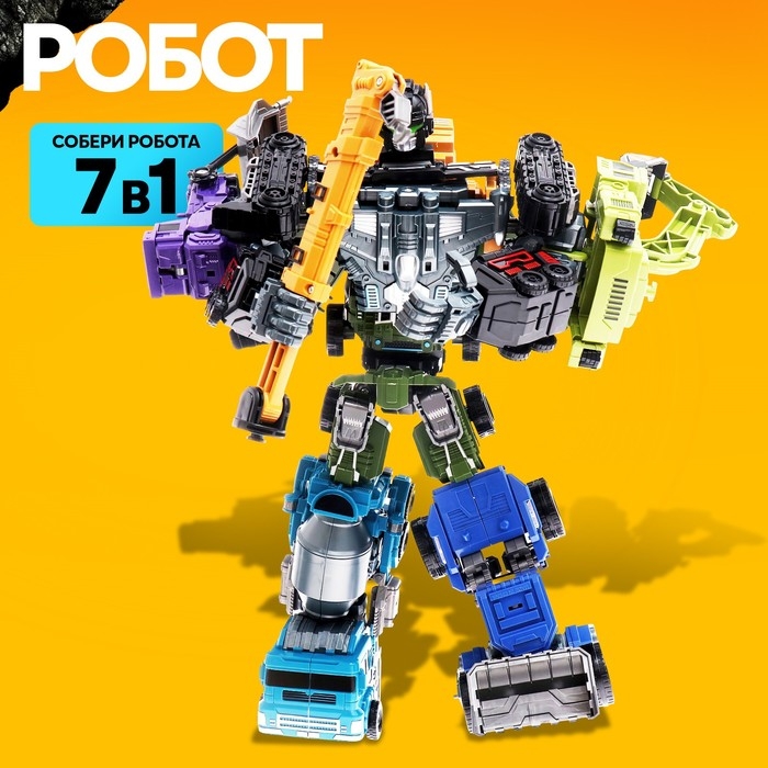 - 7 в 1: 7 роботов-машинок собираются в одного большого робота.