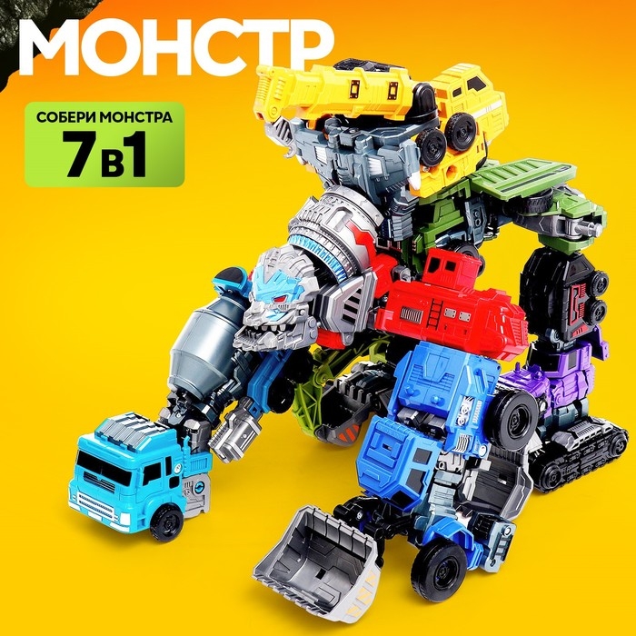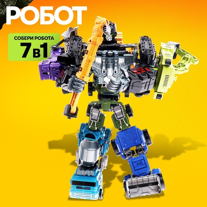 - 7 в 1: 7 роботов-машинок собираются в одного большого робота.